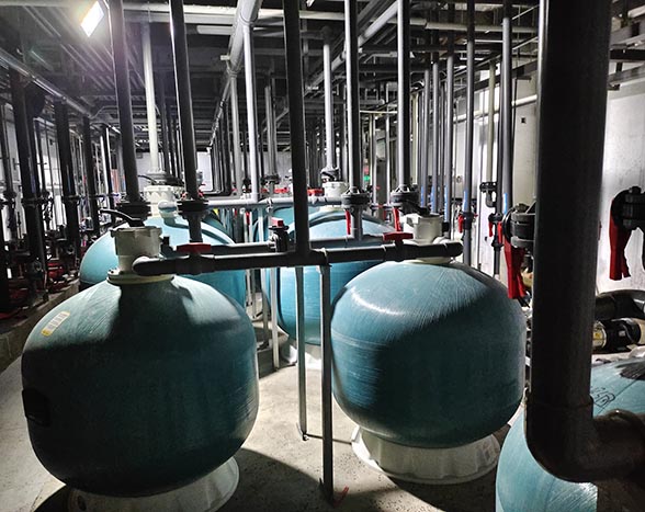过滤器(砂缸/硅藻土):安装时留足检修空间,多向阀方向正确;反冲洗管道需独立排出,避免污水回流。